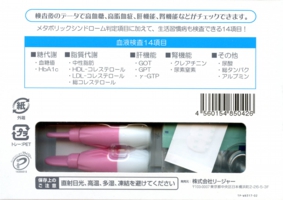 指先から血液一滴0.05mlを自分で採取して、検査所へ送ることで、自己検診できる。料金は検査所への送料込みで8,208円、医師の指導はないが、特定健診と同じ内容を受けることができる。