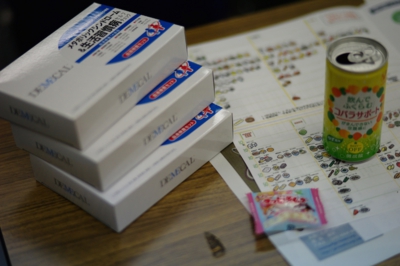 - 粒状のラムネ菓子を舌下:舌と下前歯の裏の間に入れると、急速に溶けて口腔の粘膜から直接糖が血液中に吸収される。数分で血糖値が上がり、空腹感が押さえられる。