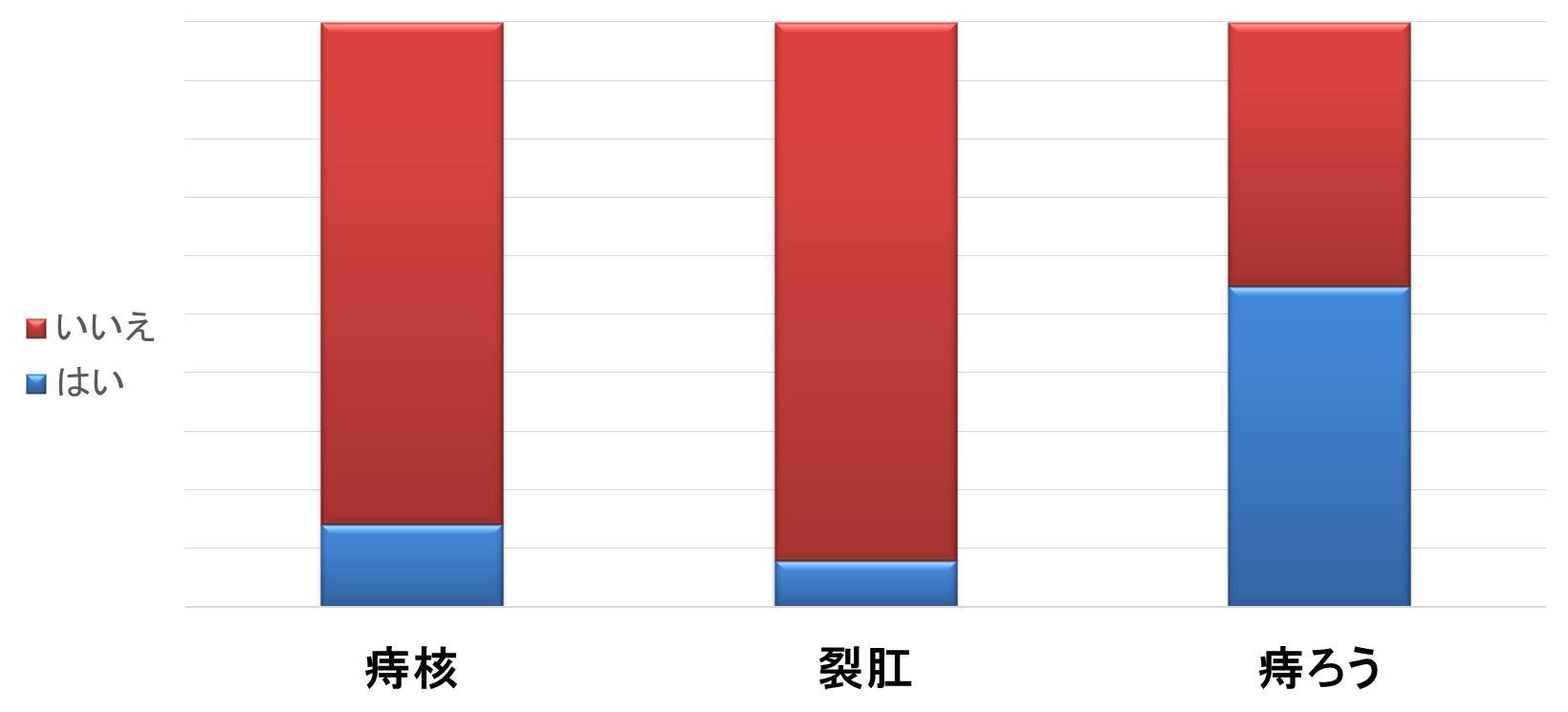 その割合は、上のグラフの様な割合ですが、この八王子では理由は不明ですが、切れ痔の患者さんが多いです。