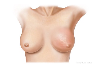 鏡の前に立ち、両手を上げたり下げたりして、左右の形に変化がないか、皮膚にえくぼやひきつれがないかじっくり観察をする。特に気をつけるところは、皮膚の色の変化である。しこりを作らないタイプの炎症性乳がんというものがある。皮膚に発赤、浮腫、ただれたり、皮膚がざらざらしたりする。バッグを肩にかけているときに当たって痛いなと思って気付く人もいる。分泌液がないか軽く乳首をつまんでチェックをする。茶色っぽかったり血の混じったものが出ていた場合は異常である。