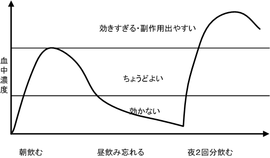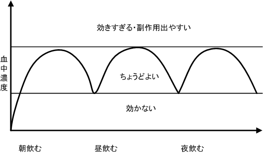 - 薬の血中濃度 薬を飲む時間と量(1日3回飲む薬の場合)
