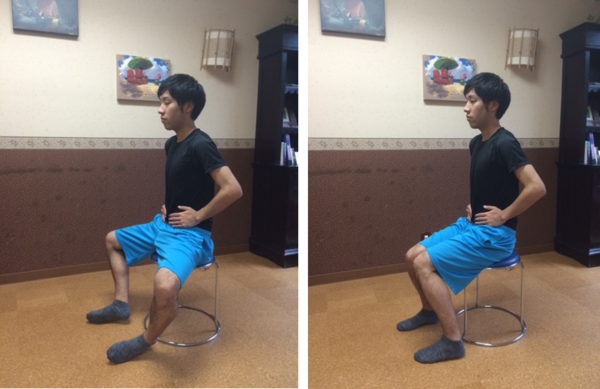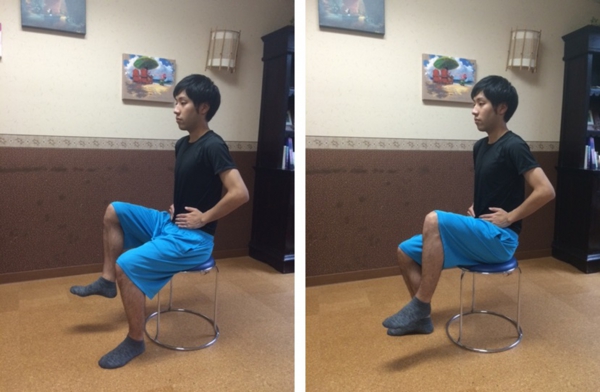 腸腰筋の動きをつける運動なので、おなかに手を当てて、おなかの中の筋肉を動かすように意識しましょう。