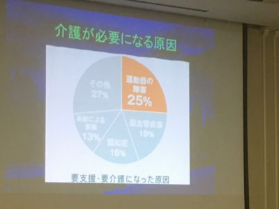実は、病気や認知症で介護が必要になるよりは、単に筋力が衰え歩けなくなることで介護が必要になることの方が多い(25%)のです。
