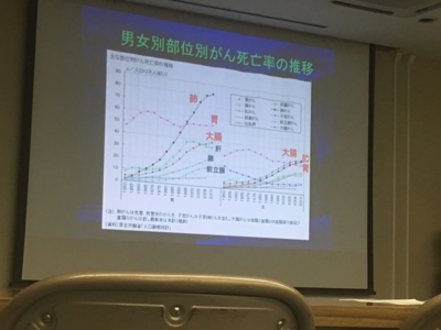 米国では大腸がん検診と禁煙が進んでいて、大腸がんに罹る方が少なくなってきていますが、受信者の少ない日本では大腸がんは増加しています。