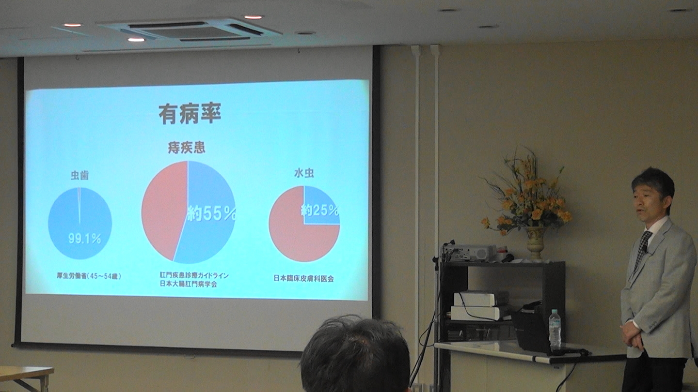 痔疾患の有病率は、自覚症状が無く治療の必要のない痔も含めると約55%と、非常に多い。このうち治療を必要とする症状がある痔が半分ほどあります。おしりの病気は恥ずかしいからと、自覚症状のある痔疾患を病院で治療せずに放置して、悪化させる患者さんが非常に多いので、是非恥ずかしがらずに、専門の病院で受診してください。