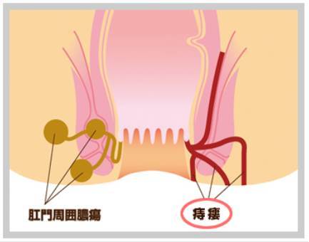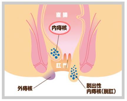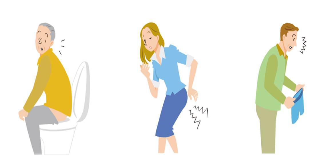 痔などによる自覚症状は、肛門内外にできたいぼ痔の肛門からの脱出、痛み、そして出血です。