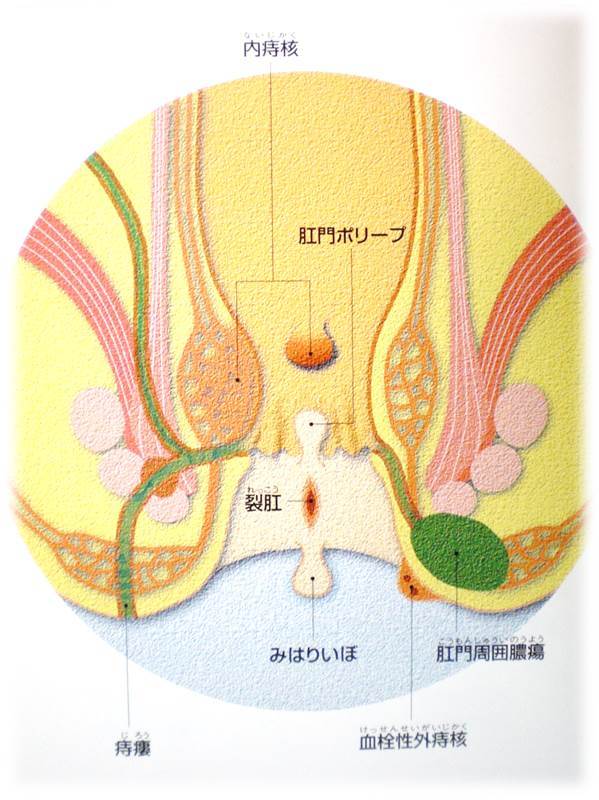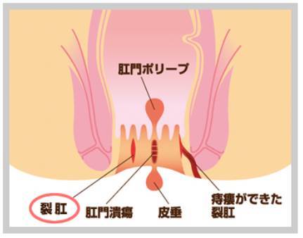 裂肛(切れ痔)は主に肛門が縦に裂けた状態ですが、中学生ぐらいから裂肛の症状がある人が多く、病院に来るまでに5年から10年、更に20年以上我慢して、悪化させてしまう患者さんが多いです。人の体は発生の段階で左右の組織が真ん中で合わさってできるので、真ん中に継ぎ目があり、弱いので、裂肛は主に肛門の前側か後ろ側が裂ける場合が多いです。