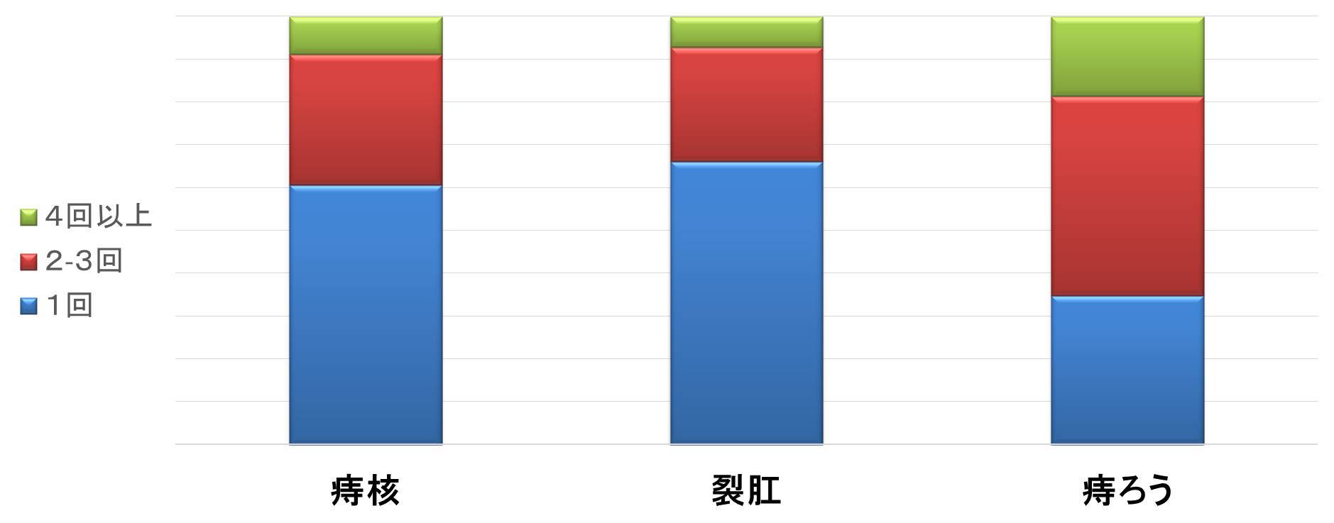 その割合は、上のグラフの様な割合ですが、この八王子では理由は不明ですが、切れ痔の患者さんが多いです。
