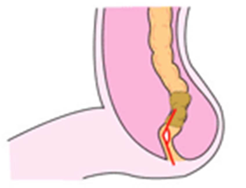 - 痔瘻を伴った慢性裂肛:慢性裂肛の傷が深くなり、肛門の外側に貫通した穴が開いてしまっています